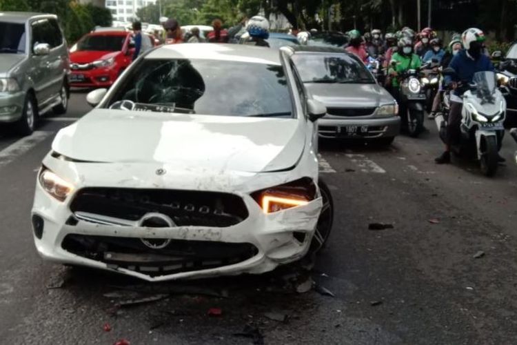 Tabrakan beruntun Mercedes-Benz A200 Hatchback, Toyota Kijang Innova dan beberapa motor di Prapanca Raya, Jakarta Selatan