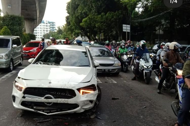 Mercy GLA 200 rusak parah usai tabrak 4 kendaraan di Kebayoran baru, Jakarta Selatan. Berawal epilepsi pengemudi kambuh