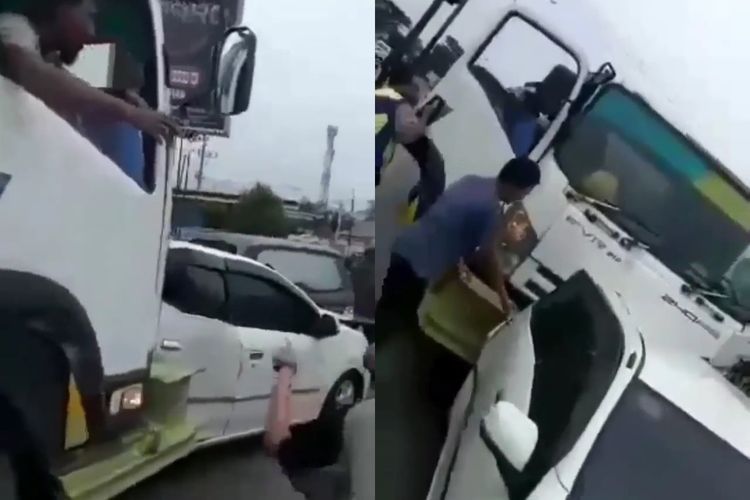 Detik-detik Truk Rem Blong Diwarnai Teriakan Histeris, Tonjok Ayla, Grand Livina, BeAT dan Harrier