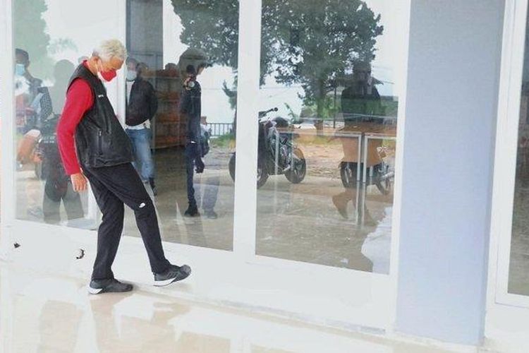 Momen Gubernur Jawa Tengah, Ganjar Pranowo marah tendang tembok palsu sekolah SMA N di Tawangmangu, Karanganyar