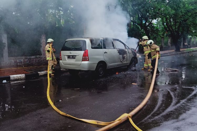 Kijang Innova hangus luar dalam usai disambar api yang keluar dari kap mesin. Api padam hitungan menit