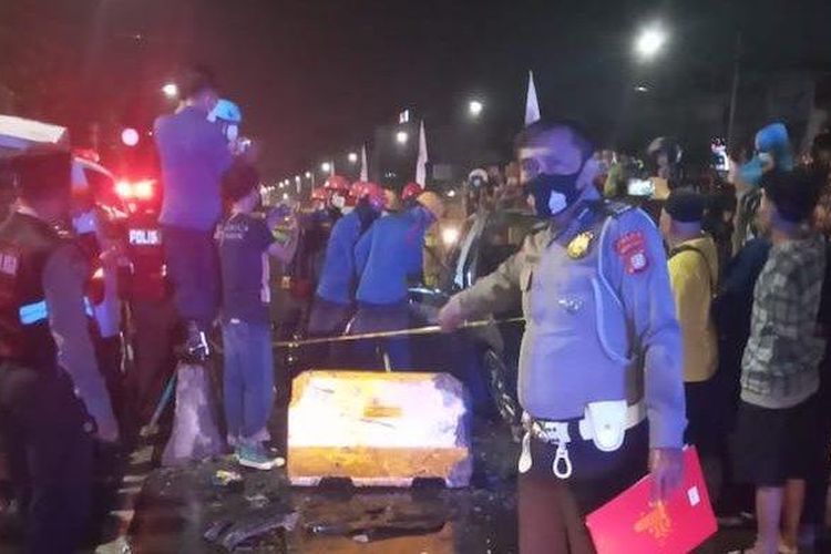 Dua penumpang Toyota Camry meninggal dunia usai terjebak di dalam saat mobil menabrak separator dan terbakar