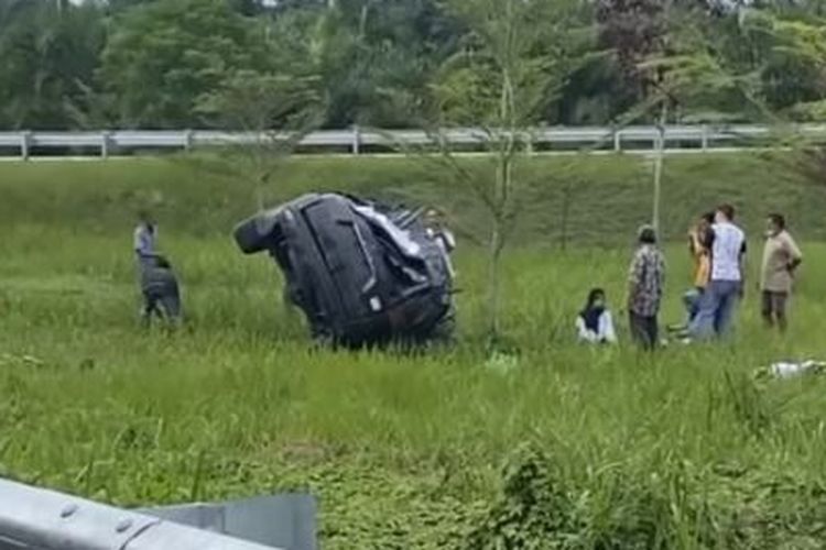 Mitsubishi Pajero Sport terobos pembatas tol Medan-Stabat, terpelanting posisi koprol sejauh 30 meter