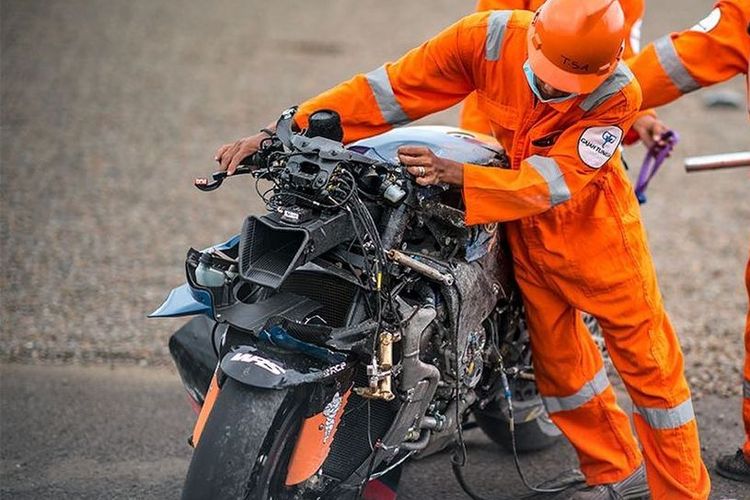 Yamaha YZR-M1 yang dikendarai Andrea Dovizionso rusak bagian wajahnya usai crash di tikungan ke-9 sirkuit Mandalika