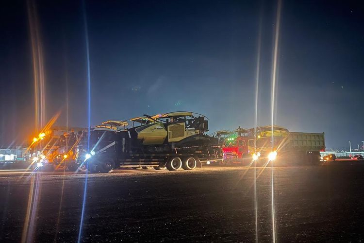 Beberapa alat berat sudah mulai berdatangan ke Lombok, siap digunakan untuk memperbaharui aspal sirkuit Mandalika
