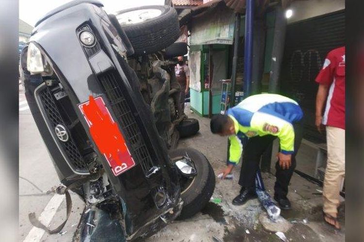 Toyota Rush pelat merah milik Kemendagri terguling di Caringin, Bogor, nyalip kaget disambut Honda BeAT