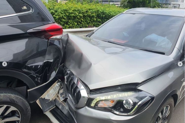 Tabrakan beruntun Toyota Fortuner, Rush, SX4 S-Cross dan Sonet di tol Dalam Kota Semanggi akibat deket-deketan