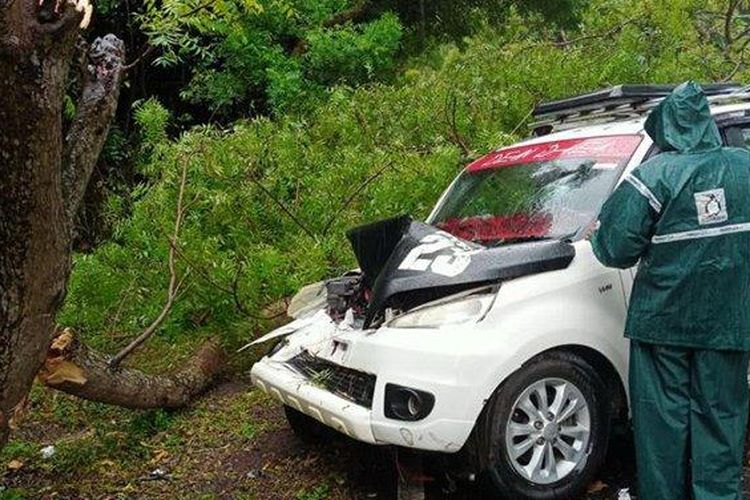 Daihatsu Terios beris satu anggota keluarga hajar pohon di Hutan Cekik, Gilimanuk, Melaya Jembarana, Bali secara mendadak