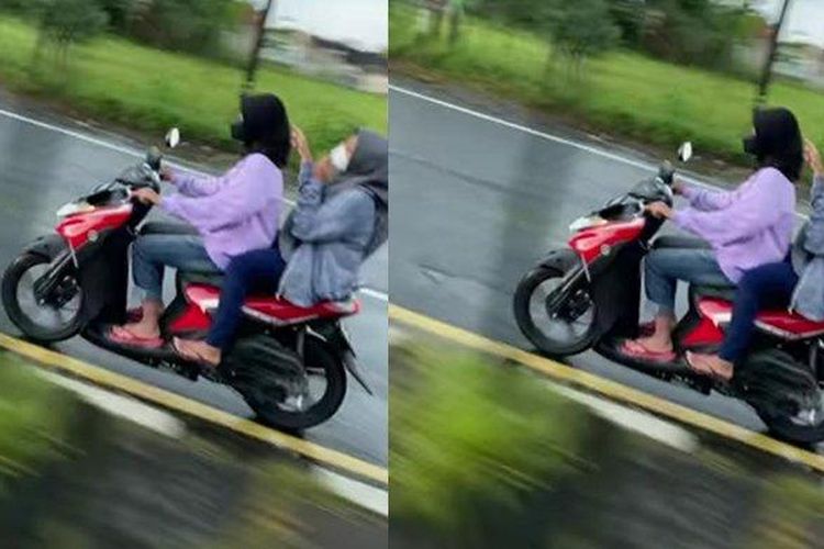 Kejadian lagi di Jalan Solo-Jogja, dua ABG boncengan naik Yamaha Gear 125 nekat lawan arus tanpai pakai helm