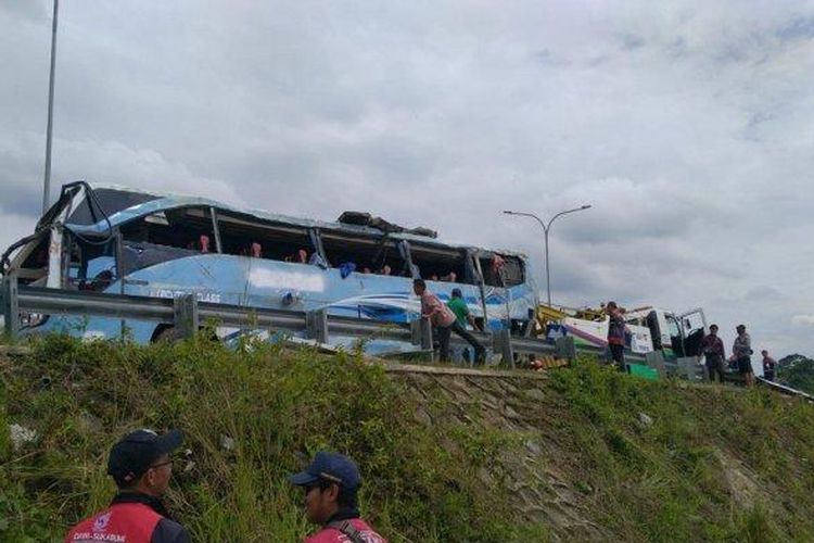 Bus Pariwisata ANS terperosok sedalam 20 meter usai hilang kendali di Tol Bocimi. Akibat kecelakaan ini, 2 dinyatakan tewas