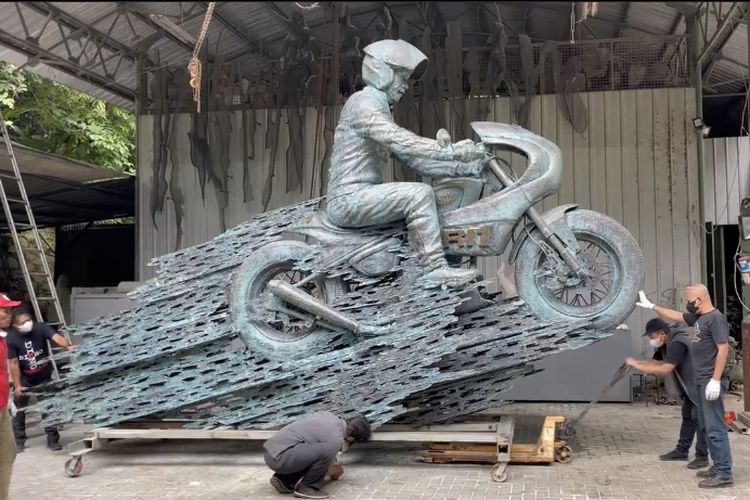 Patung Jokowi Naik Motor Sudah Dipasang di Sirkuit Mandalika, Bobotnya 3,5 Ton