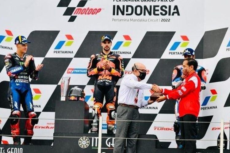 Ternyata inilah isi souvenir dari Presiden Jokowi ke pembalap MotoGP dan Bos Dorna Sport di podium MotoGP Indonesia 2022