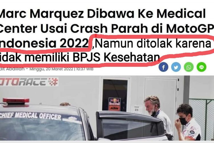 Meme Marc Marquez ditolak rumah sakit karena tak punya BPJS berhasil bikin Menkominfo panik, gelagapan sampai cek kebenaran