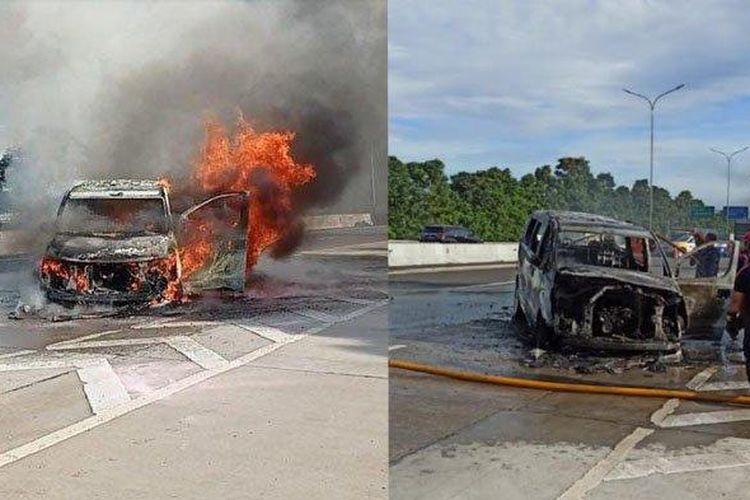 Hyundai H-1 jadi bangkai setelah terbakar di KM 42 tol Jagorawi, berawal mesin mati mendadak dan tercium bau asap