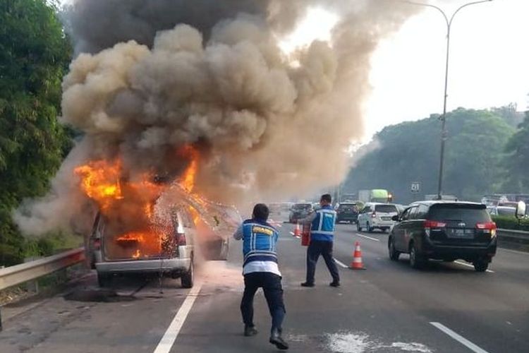 Berawal AC Mati, Peugeot 806 terbakar habis hingga isi kabin di tol JORR arah Cakung, Cikunir, kota Bekasi