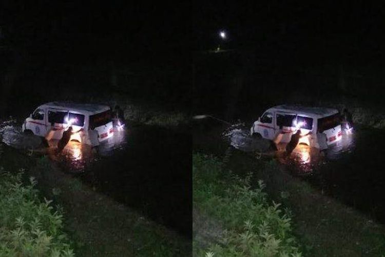Ambulans terpaksa tercebut ke sungai Katumpi setelah pengemudi lihat penampakan mistis di tengah jalan