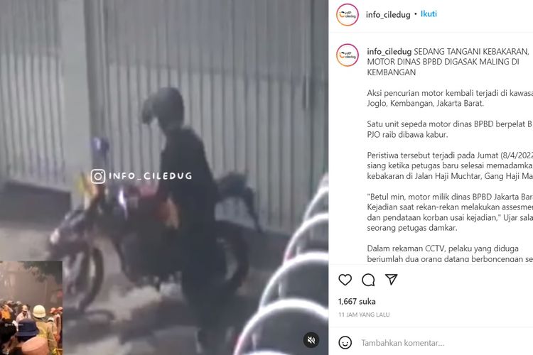 Nekat banget, CRF150L milik petugas BPBD yang menangani kabakaran digasak maling. Detik-detik pelaku malancarkan aksi terekam kamera