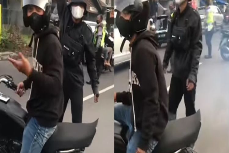Viral video seorang pemotor dan pria di sampingnya menggeber RX-King di samping polisi yang sedang bertugas