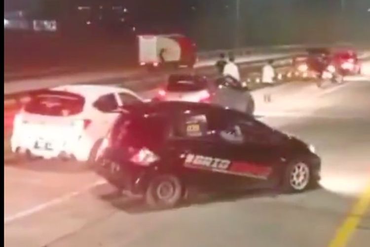 Viral video rombongan mobil yang diduga LCGC melakukan aksi blokade jalan tol Soroja, sempat pamer knalpot racing