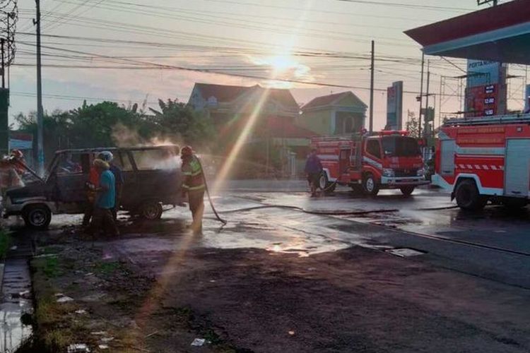 Toyota Kijang hangus tak bersisa saat dilalap api usai mengisi bensin di sebuah SPBU. Berawal dari suara dentuman