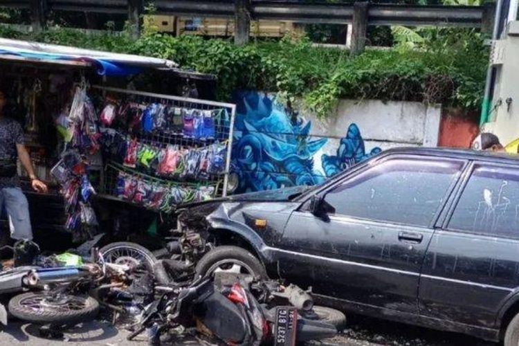 Tiga motor di Semarang tergeletak diterjang Toyota Starlet yang melaju terlalu ke kanan karena pengemudi ngantuk