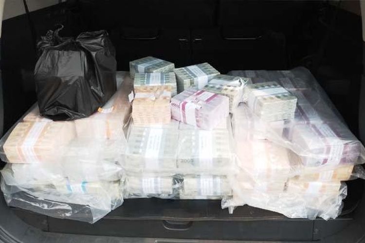Tumpukan uang tunai Rp 3,7 miliar diamankan Polisi di exit tol Mojokerto Barat setelah curiga ada Gran Max dan Pajero Sport di tempat gelap