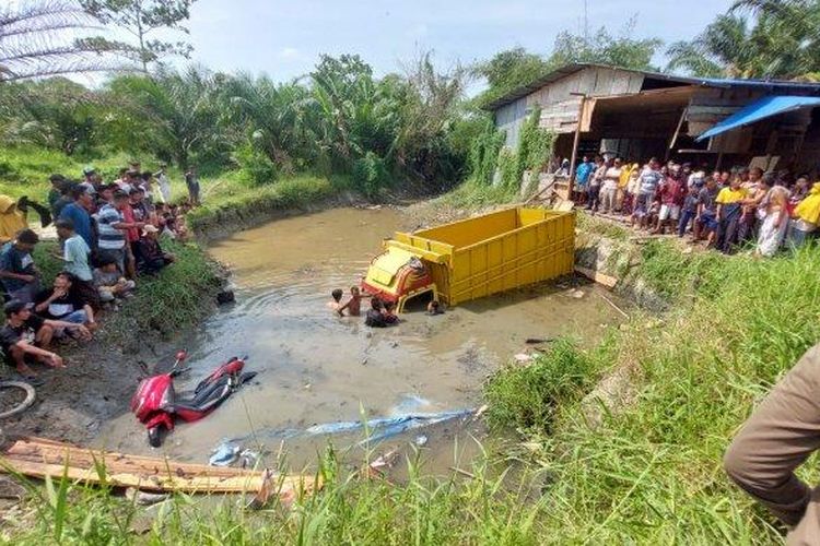Sopir truk usia 16 tahun tabrak dua motor dan warung hingga masuk ke sungai. Begini kronologi lengkapnya