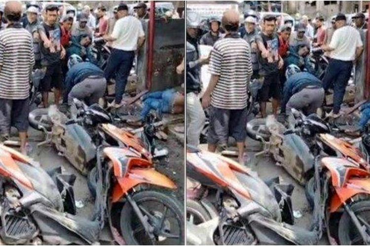 Lima Motor Hancur, Ertiga Mendadak ke Lajur Kanan, Seruduk Pangkalan Ojek