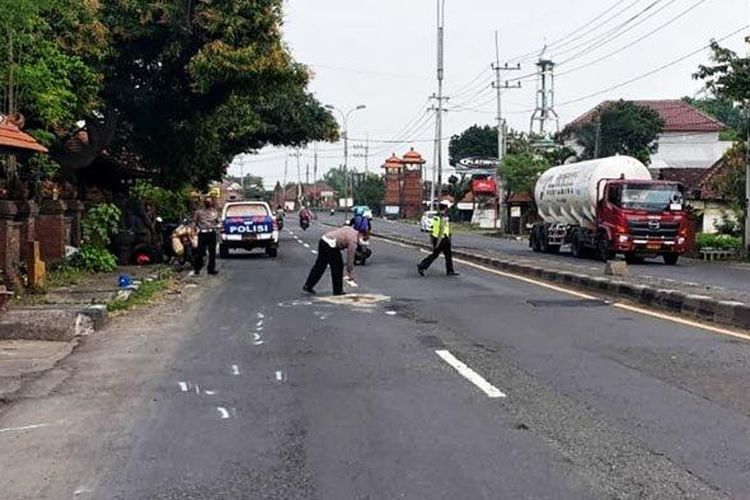 Seorang anak menyaksikan ibunya meregang nyawa usai mudik rombongan ke Jombang. Anaknya sempat menghindari motor ibunya sampai jatuh