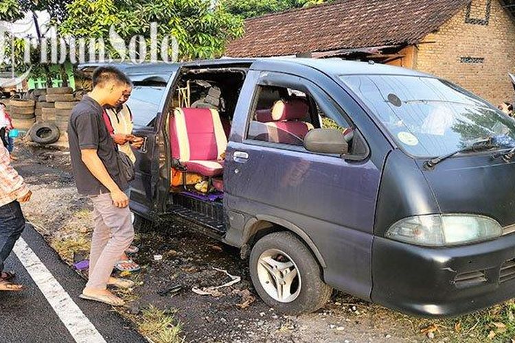 Daihatsu Espass disambar api hampir seluruh bodinya saat sedang mengisi angin. Berawal cabut selang bensin