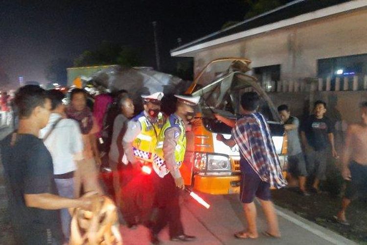 Isuzu Elf koprol beberapa kali setelah disundul bus Sedya Mulya dari belakang kemudian disambut truk dari arah berlawanan di Subang, empat nyawa tewas