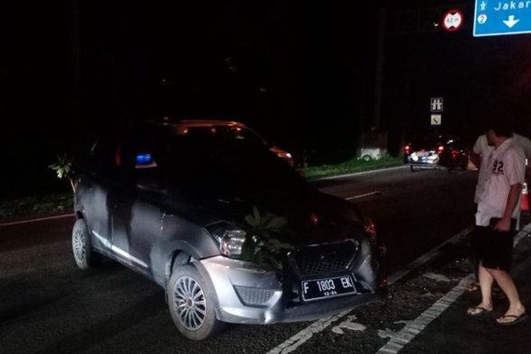 Honda Brio, Suzuki Ertiga dan Datsun GO+ Panca terlibat kecelakaan beruntun di Bogor. Berawal rem dadakan gara-gara pindah jalur