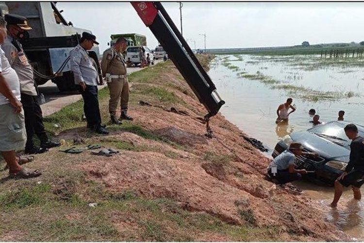 Toyota Vios masuk ke rawa-rawa usai hantam lubang jalan hingga berujung belok arah. Kejadian berulang?