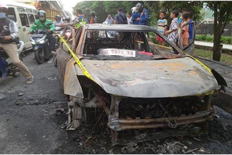Suzuki Baleno Hatchback baru keluar dealer jadi rongsokan di depan RS Fatimah, Sukarami, kota Palembang, masih pakai pelat provit