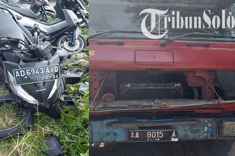 Honda BeAT rusak parah usai terlibat adu bentur lawan truk tronton di jalan raya Solo-Semarang. Pemotor meregang nyawa