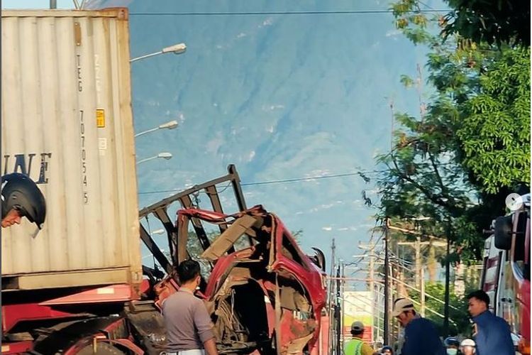 Kronologi dan identitas korban bapak anak kecelakaan maut truk kontainer adu kepala musuh truk kontainer Gudang Garam di Teras Boyolali