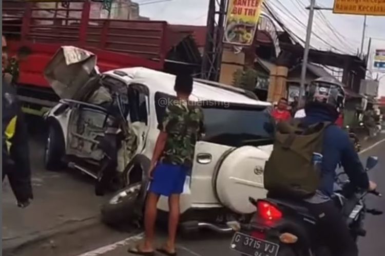 Daihatsu Terios remuk musuh bus PO Efisiensi di Banyumanik, Semarang, tiga orang jadi korban hingga patah kaki