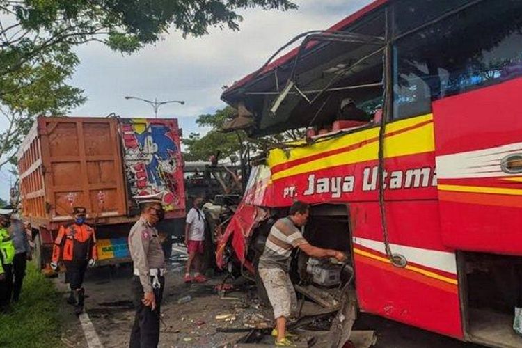 Tragedi Bus Jaya Utama Indo Ugal-ugalan, Bodi Hancur Terpotong, Sabet Dump Truck