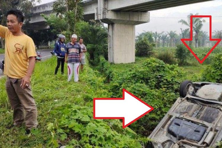 Honda Jazz dibawa kakak beradik koprol ke semak belukar di Tanjung Morawa, Deli Serdang gara-gara putar balik