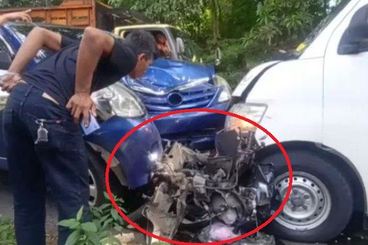Kecelakaan mengerikan di Cibeber, Cianjur, Honda BeAT amburadul diantara Daihatsu Xenia dan Gran Max, tubuh pengendara tergencet