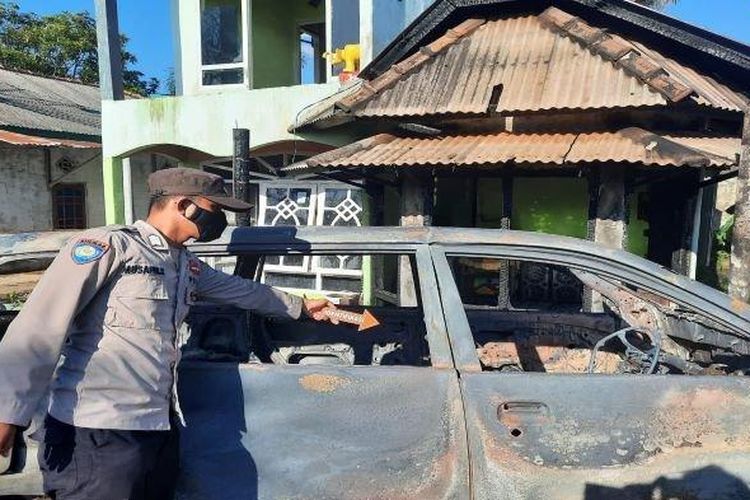 Toyota Avanza terbakar habis saat baru datang ke toko variasi mobil, percikan api dari arah belakang, ikut sambar teras rumah warga