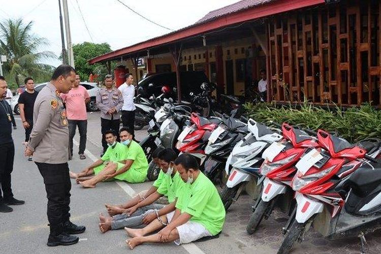 Honda BeAT Sampai Scoopy Dijejer Rapi Polisi, Lima Orang Tertunduk, Tangan Diborgol