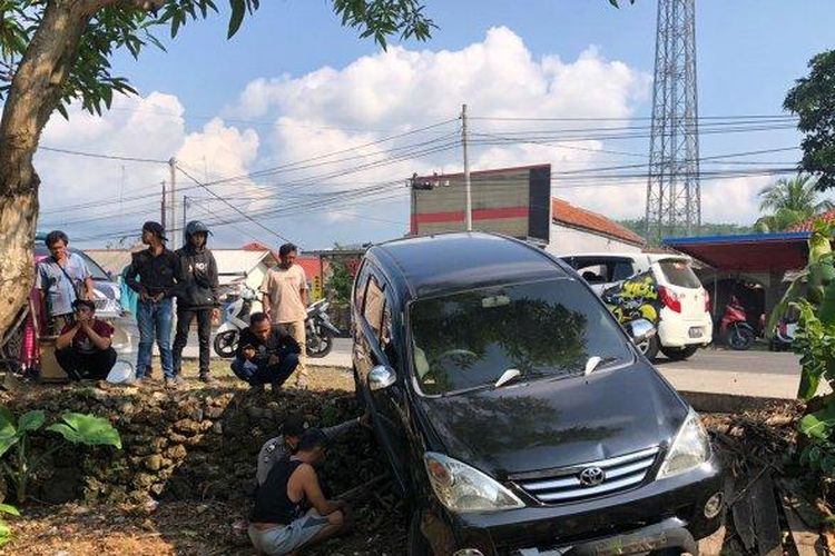 Toyota Avanza sosor Honda Supra X yang melebar ke tengah jalan akibat pengendara mengantuk di Padaherang, Pangandaran