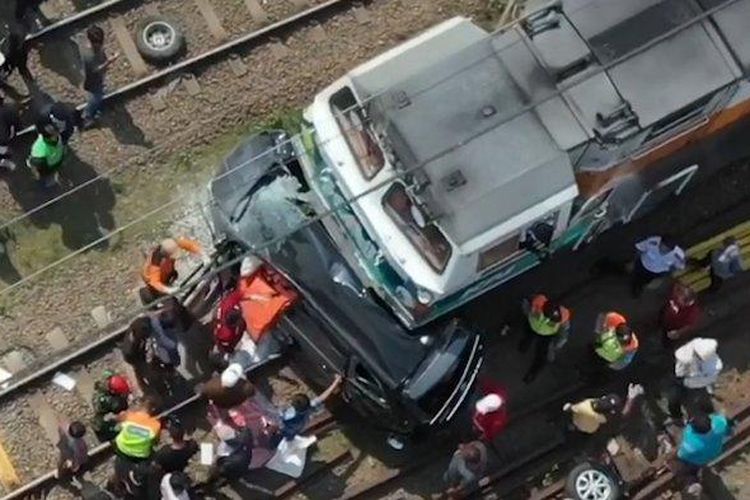 Avanza ditusuk kereta api di Tambun usai mesin mati di tengah rel. Anak dan ibu selamat, sedangkan ayah yang mengemudikan meninggal dunia