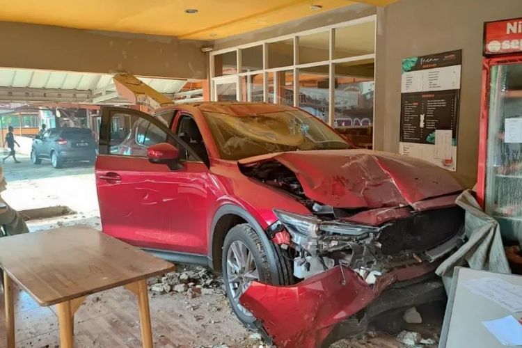 Rekaman video Mazda CX-5 hantam kafe hingga nyaris tewaskan tiga orang di cucian mobil Cibubur, pedal gas tersangkut karpet mie
