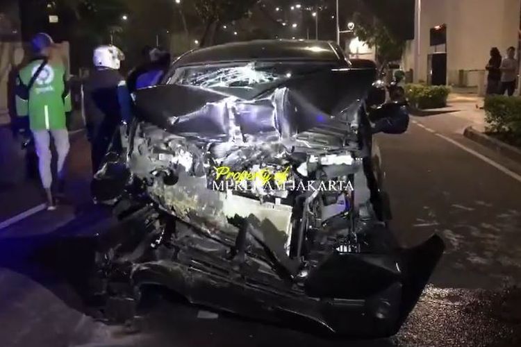 Toyota Avanza hancur terburai sendirian, ditinggal kabur musuh yang ditabrak dengan barang bukti ban serep