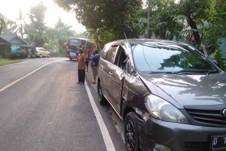 Kronologi bodi kanan Toyota Kijang Innova berantakan serta baret parah akibat disenggol dump truck dari arah berlawanan di Pangandaran