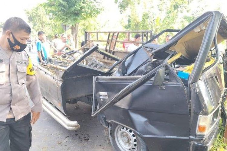 Mitsubishi L300 angkut lima sapi kurban hancur lebur tabrak batang pohon asem di Kutosari, Doro, Pekalongan