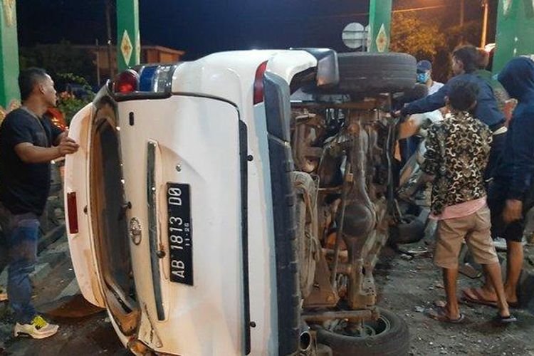 Gaduh Saat Dini Hari, Toyota Avanza Putih Terguling di TPR Pantai Parangtritis