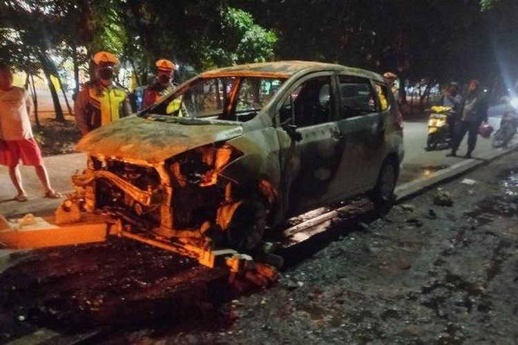Suzuki Ertiga terbakar hingga berubah jadi rongsokan, luar dalam terkelupas habis di Jl Benteng, Betawi, Poris, Tangerang